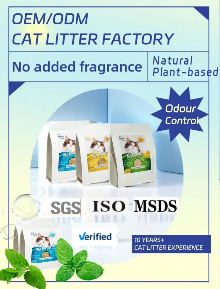 Our plant-based cat litters offer superior deodorizing and antibacterial properties. They retain the natural fragrance of the plants without artificial additives. Our R&D center is partnered with a well-known university, ensuring our products meet SGS, MSDS, and ISO quality management certifications.